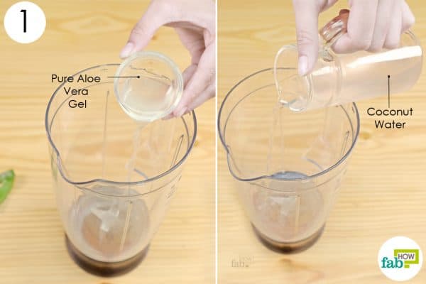 Шаг 1. Поместите гель алоэ вера и кокосовую воду в блендер