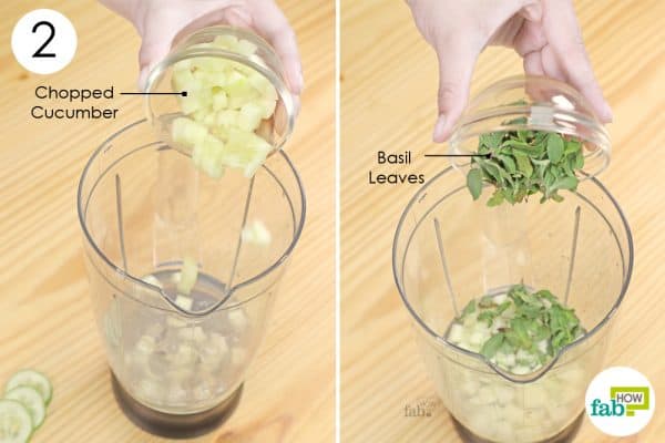 Шаг 2. Добавьте нарезанный огурец и листья базилика