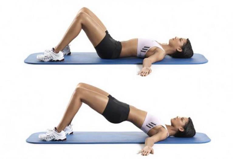 Это упражнение отлично подходит для укрепления ваших ягодиц, бедер, спины и пресса. Лягте на пол, согните колени и поставьте стопы на пол. Вытяните руки в стороны под углом 45 °. Затем напрягите мышцы ягодиц и поднимите бедра вверх так высоко, как вы можете, не прогибая таз. Аккуратно опустите тело вниз и повторите.