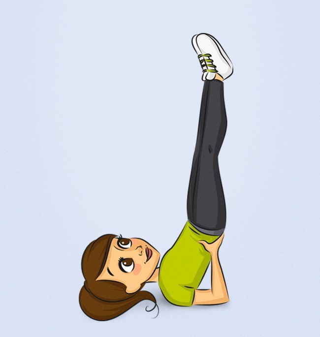 Ложитесь на пол, вытянув ноги к потолку. Один из ваших ног встал, положите руки на бедра для поддержки. Держите пальцы ног в сторону потолка. Не напрягайте мышцы шеи.