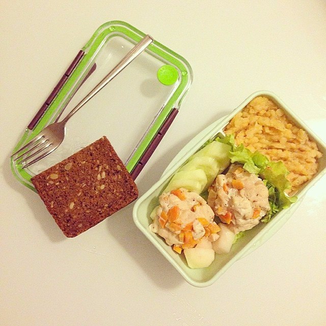 1. Пюре из чечевицы (50 грамм в сухом виде), паровые котлетки из грудки с морковкой (20 минут в мульте), огурчики, редиска,цельнозерновой хлеб.