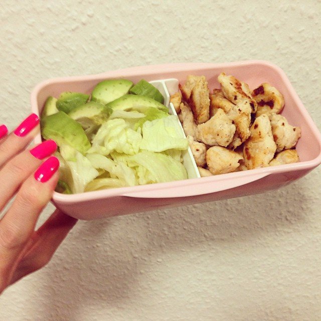 6. Жареное филе на антипригарной сковородке со специями, салат айсберг, авокадо и 2 кусочка цельнозернового хлеба.