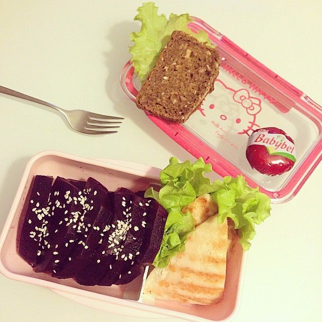 4. Филе на гриле, вареная свекла с кунжутными семечками, цельнозерновой хлеб ? с сыром.