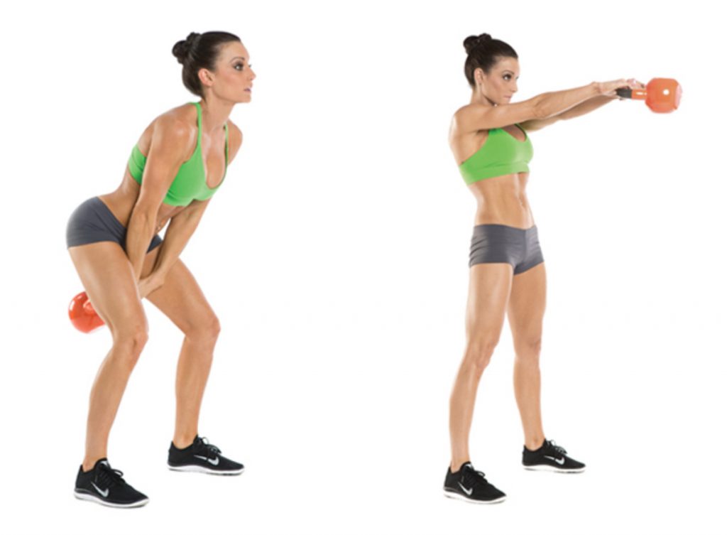 Это упражнение задействует все мышцы в верхней части спины и груди. Поставьте ноги на ширину плеч, и, когда вы начинаете опускайте, качайте гири от ног. Сделайте 2 подхода по 12-15 повторений.