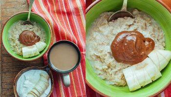 Овсяная каша с арахисовой пастой. Прекрасный питательный завтрак.