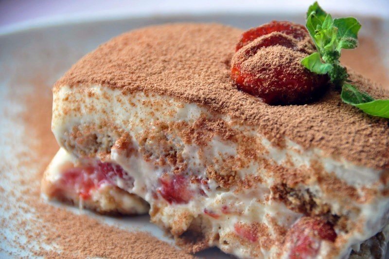 Нарезаем бананы и клубнику. Взбиваем творог с молоком блендером до консистенции крема. Добавьте 2 столовых ложки кофе. Выкладываем третью часть бананов на дно большой формы с плоским дном. Следующим слоем выкладываем третью часть клубники, тертый шоколад и смесь творога. Таким образом выкладываем остальные два слоя. Последний слой должен быть творог и тертый шоколад. Украшаем клубникой и убираем в холодильник на 4 часа, а лучше на ночь.
