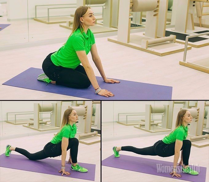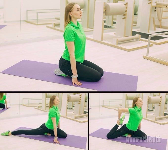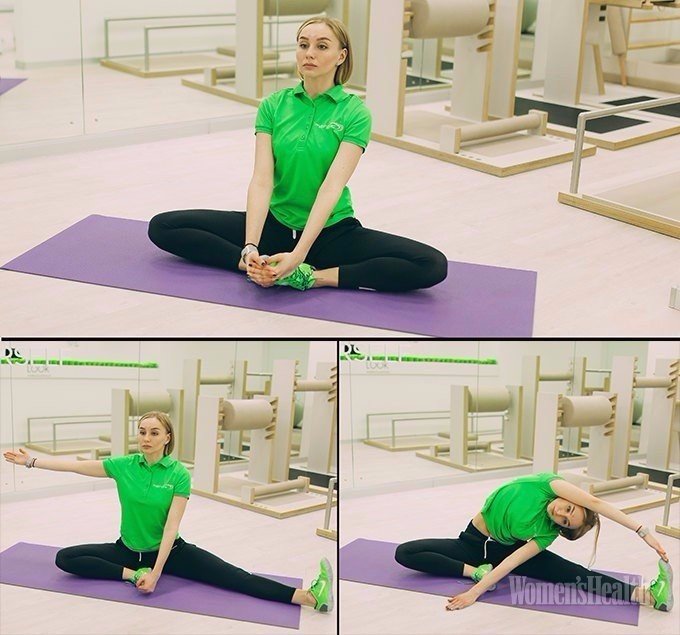 Наклоны, переходы и т.п.(динамические упражнения) выполняем от 30 раз на каждую сторону. Всю статику выполняем от 30 секунд и дольше.