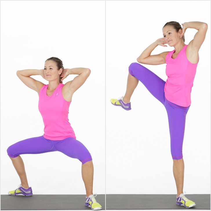 Reps: 10, каждая нога- Начните стоя на левой ноге.