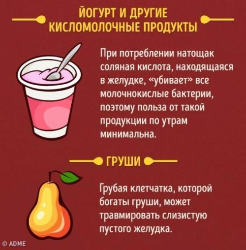 ДиетыОксана Слаб3.1к. Какие продукты нельзя есть натощак! Оказывается, я завтракала не правильно! Йогурт, кофе и свежевыжатый апельсиновый сок — именно так большинство из нас завтракают. К сожалению, многие не знают, что не все можно употреблять натощак