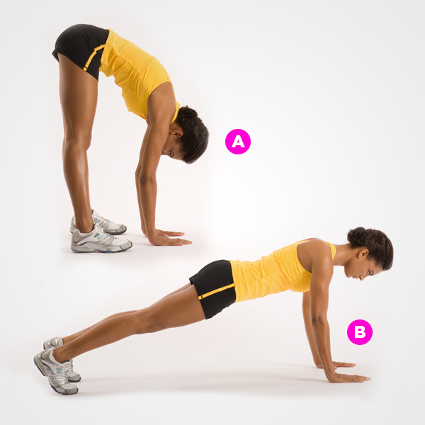 Задержитесь в этом положении на три медленных, глубоких вдоха. Прогулка на руках, пока вы не будете в положении отжимания с руками под плечами и вытянутыми ногами. Задержитесь в этом положении в течение 3 медленных, глубоких вдохов. Прогулка ног к вашим рукам, пока вы не вернетесь в стартовую позицию. Задержитесь в этом положении в течение трех медленных вдохов и повторите упражнение еще два раза.