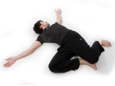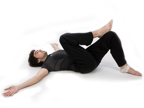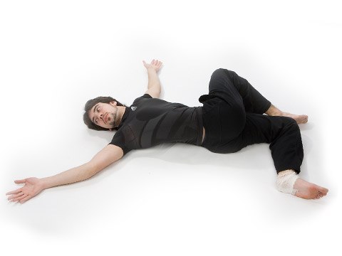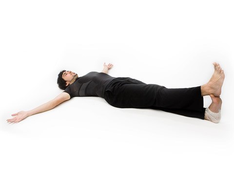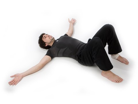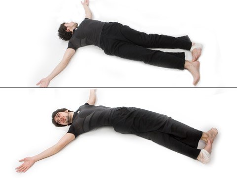 Для этого делают вдох и одновременно сгибают ноги в коленях (стопы на полу), а руки в локтях, которые лежат на полу, кисти свободно свисают. В этом положении необходимо задержаться 10–20 секунд, а затем во время выдоха, без мышечных усилий, плавно выпрямить ноги и опустить руки.