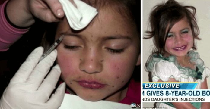 8. Тревожным является тот факт, что 8-летняя девочка сама хочет, чтобы ей делали все эти инъекции. По ее словам: «Я каждый день смотрю на себя в зеркало, и у меня начинают появляться морщинки».