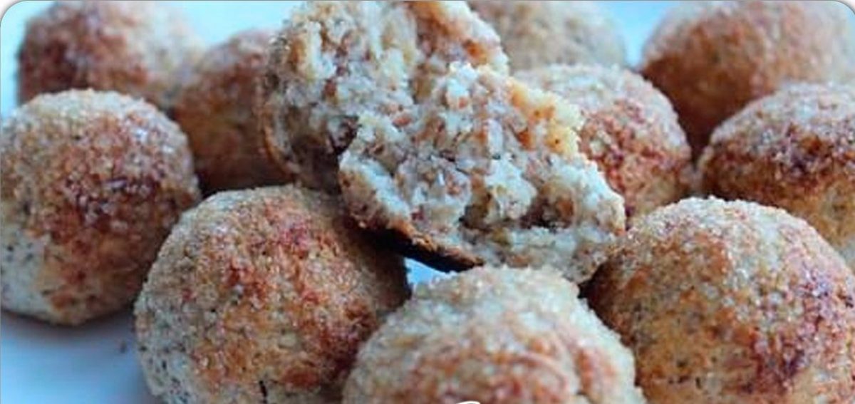 Смешиваем кокосовую стружку, сухое молоко и миндаль. Добавляем размятый банан и замешиваем мягкое тесто. Мокрыми руками скатать шарики и обвалять в сахаре.