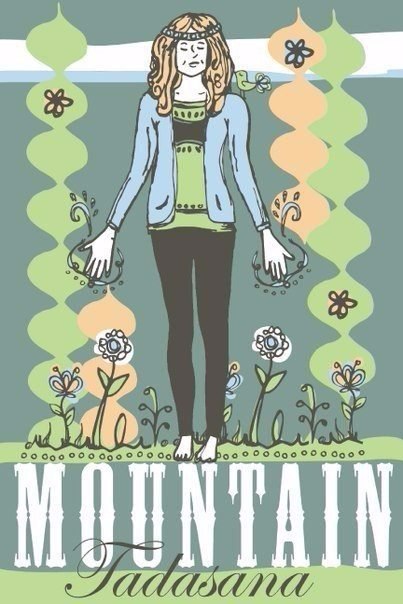 Тадасана (поза горы). Показания — артриты и плохая подвижность в шее, плечах, локтях, кистях рук, сутулость, боли в спине, онемение стоп, плоскостопие, застойные явления в икроножных мышцах и мышцах бедер.
