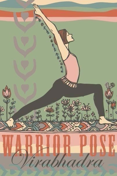 Вирабхадрасана (поза воина) — тонизирует лодыжки и колени, излечивает тугоподвижность шеи плеч и спины.