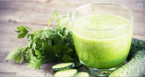 1 огурец, 1 лимон, 1 столовая ложка тертого имбиря, 1 столовая ложка сока алоэ вера, пучок петрушки или кинзы и 1/2 стакана воды. Сок ингредиентов хорошо пить перед сном для увеличения метаболизма и потери веса.