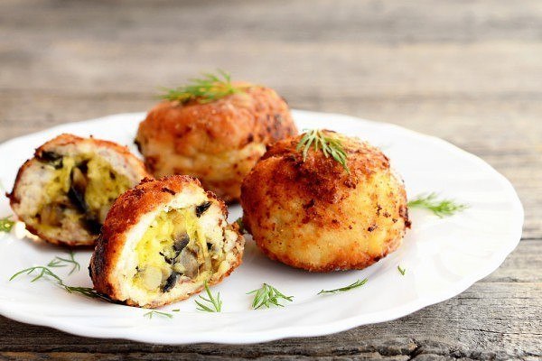 Залепляем края и формируем котлеты продолговатой формы. Обваливаем в панировочных сухарях и обжариваем с обеих сторон до готовности