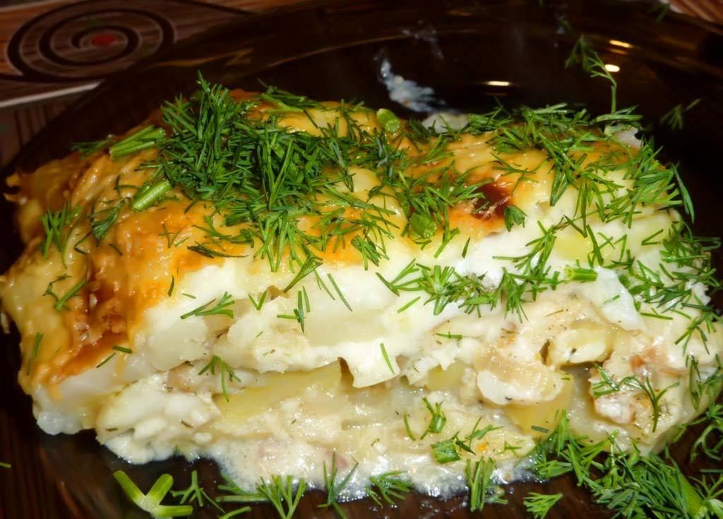Выкладываем рыбу в форму, солим, перчим. Сверху выкладываем лук, нарезанный кольцами и натертую морковь. Сверху натертый, смешанный с яйцом и йогуртом. Запекать минут 20 -30 в духовке.