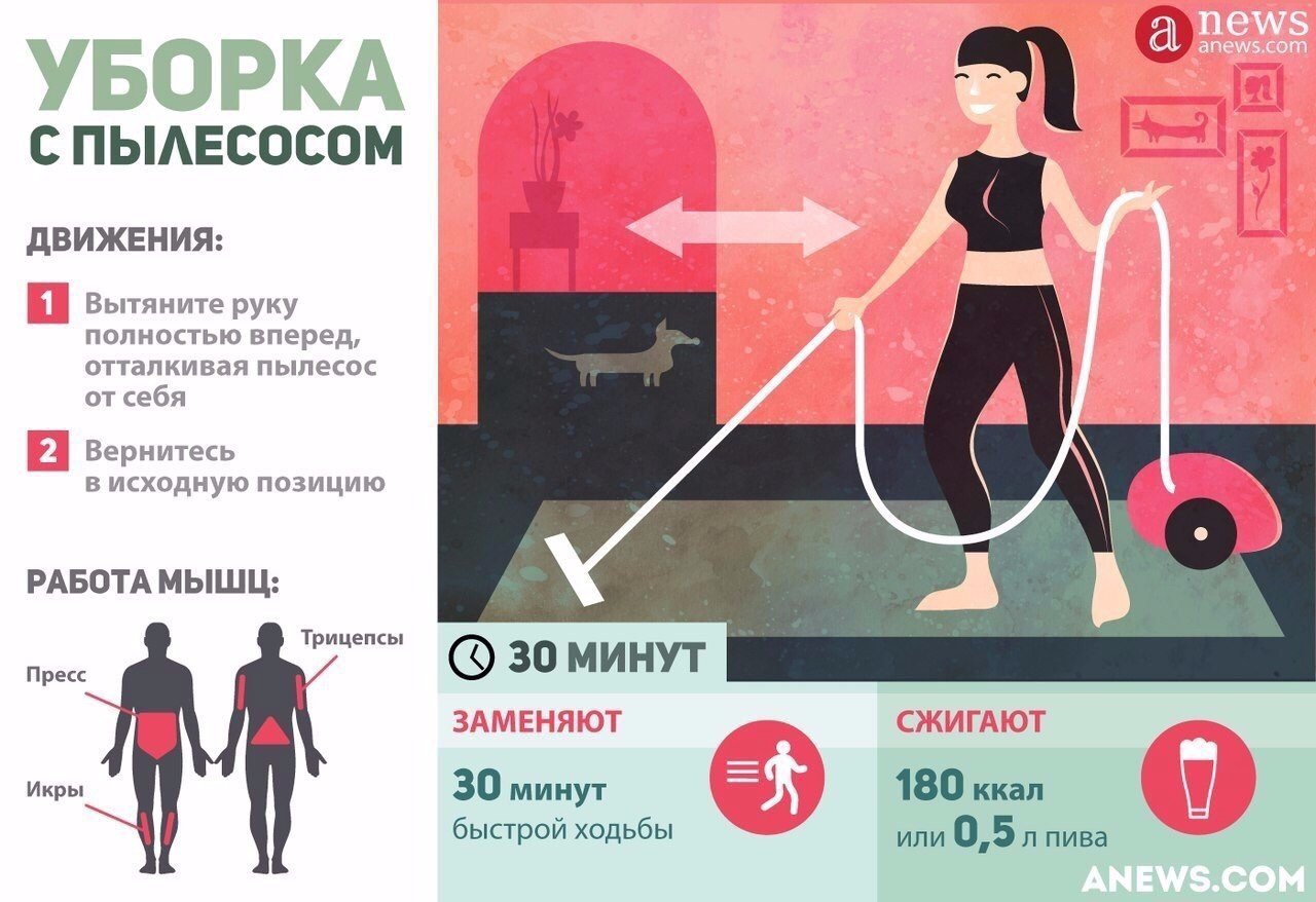 Спорт и фитнесОксана Слаб3.3к. Сколько калорий сжигается и какие мышцы работают во время работы по дому? Пропылесосить, что-ли?