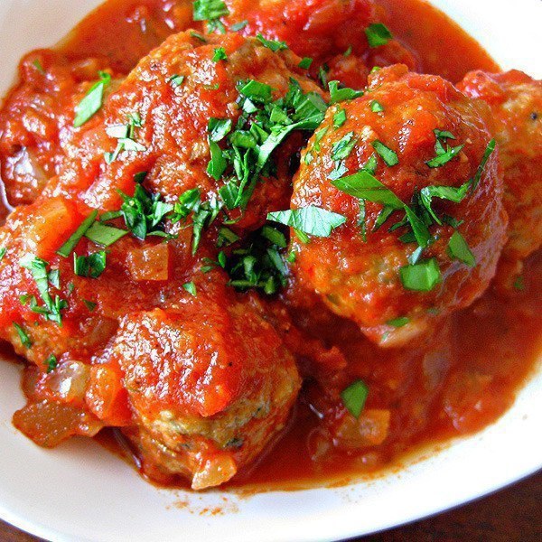 Подавать тефтели щедро полив их соусом и посыпав свежей зеленью.