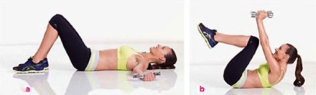 Для достижения наилучших результатов, делать эти упражнения 2-3 раза в неделю, а два дня делать некоторые другие кардио упражнения. Вам понадобится две небольших 1-1,5 кг гантели.