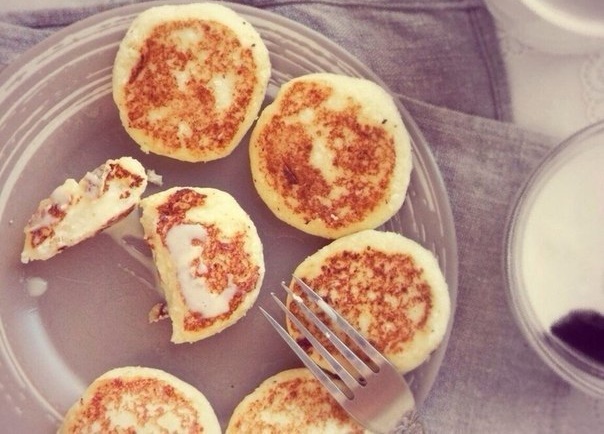 Смешать творог, банан, яйцо, изюм и муку. Скатать лепешки и обжарить на небольшом количестве масла.