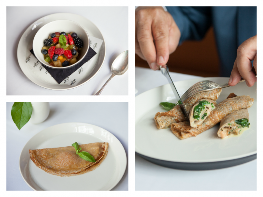 Злаки на завтрак — так себе идея. Их лучше есть на обед. Вообще начинать питаться правильно имеет смысл с привыкания к медленным углеводам. Вы любите ветчину? Тогда возьмите блины с сыром, яйцами и ветчиной. Только попросите, чтобы сделали без сыра. И сезонный салат из фруктов. У них нет семги? Тогда я тоже возьму салат из фруктов и блины с семгой и шпинатом. Хотя сочетание, конечно, весьма странное.