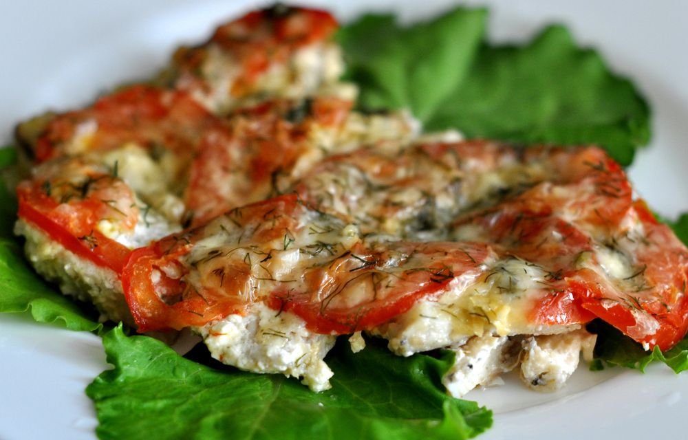Диетическая рыба с помидорами и сыром